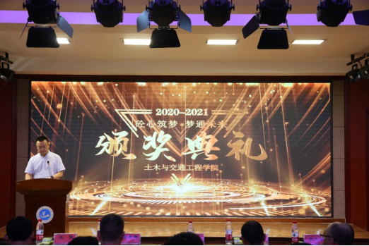 (通讯员:陈黎明)为了选树优秀学生典型,弘扬时代青春正能量。2021年6月8日下午,土木与交通工程学院2020年度“砼心筑梦、梦通未来”颁奖典礼在4号教学楼音乐教室隆重举行。土木与交通工程学院院长宋新生、土木工程与智慧交通研究中心主任李爱增、党委副书记杨国洲、副院长王仪、副院长吕大为、学工办主任魏艳楠、各教研室主任、全体辅导员及获奖学生代表200余人齐聚一堂,共同见证了典礼荣光。
