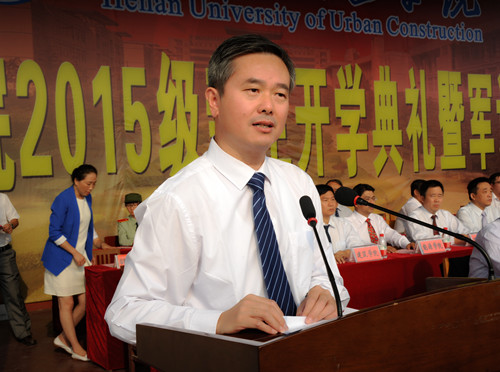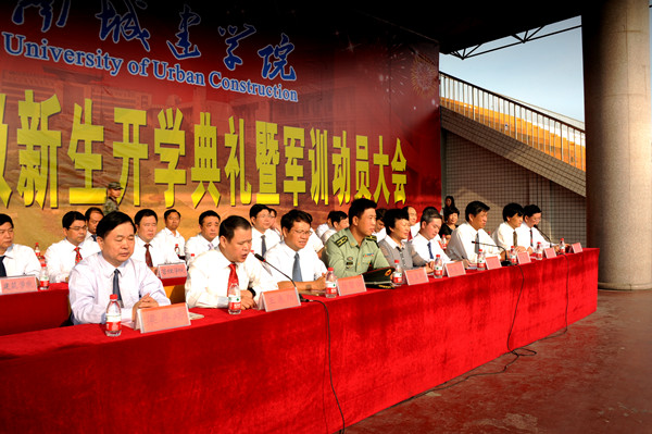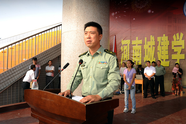 王召东对2015级新生加入城建大家庭表示热忱欢迎和真诚祝福,向承训官兵表示衷心感谢。他和大家一起分享了著名土木建筑学家、桥梁专家茅以升,建筑家和建筑教育家杨廷宝,诺贝尔物理学奖获得者崔琦等人的励志故事,勉励全体新生:梦想是人生的动力,要敢于梦想,努力以学校30多年的快速发展和积淀为坚实基础去成就工程师、建筑师和其他更多不一样的梦想;行动成就梦想,要向优秀的学长一样,朝着自己的梦想积极行动;勤奋是实现梦想的阶梯,把勤奋作为不懈追求,始终保持良好的习惯,以坚韧的精神追求梦想;细节是实现梦想的基石,无论做人还是做事,都要注重细节,以细节铸就梦想;时刻带着感恩的心,让追逐梦想的脚步更加轻盈。他希望每位同学在军训中都能顽强拼搏、坚忍不拔,用实际行动展现当代青年大学生的良好形象和风采,同时在今后的学习生活中都能心中有梦,奋勇前行,努力学习,勤于实践,让大学生活更美丽,让大学时代更精彩。
