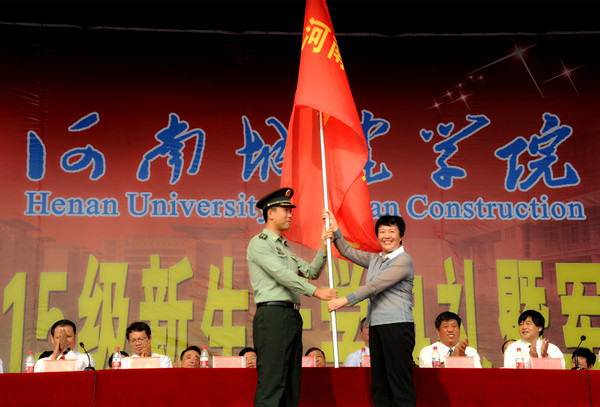 9月16日上午,我校在体育场举行2015级新生开学典礼暨军训动员大会,校党委书记张惠贞出席典礼并向军训团授旗,校长王召东出席典礼并讲话,校领导陈丙义、杨留栓、张坤书、王春阳、许朝民、梁再培,军训团团长、中国人民解放军71622部队营长殷盘举出席典礼。典礼由副校长王春阳主持。2015级新生、各学院及相关部门负责人参加典礼。
