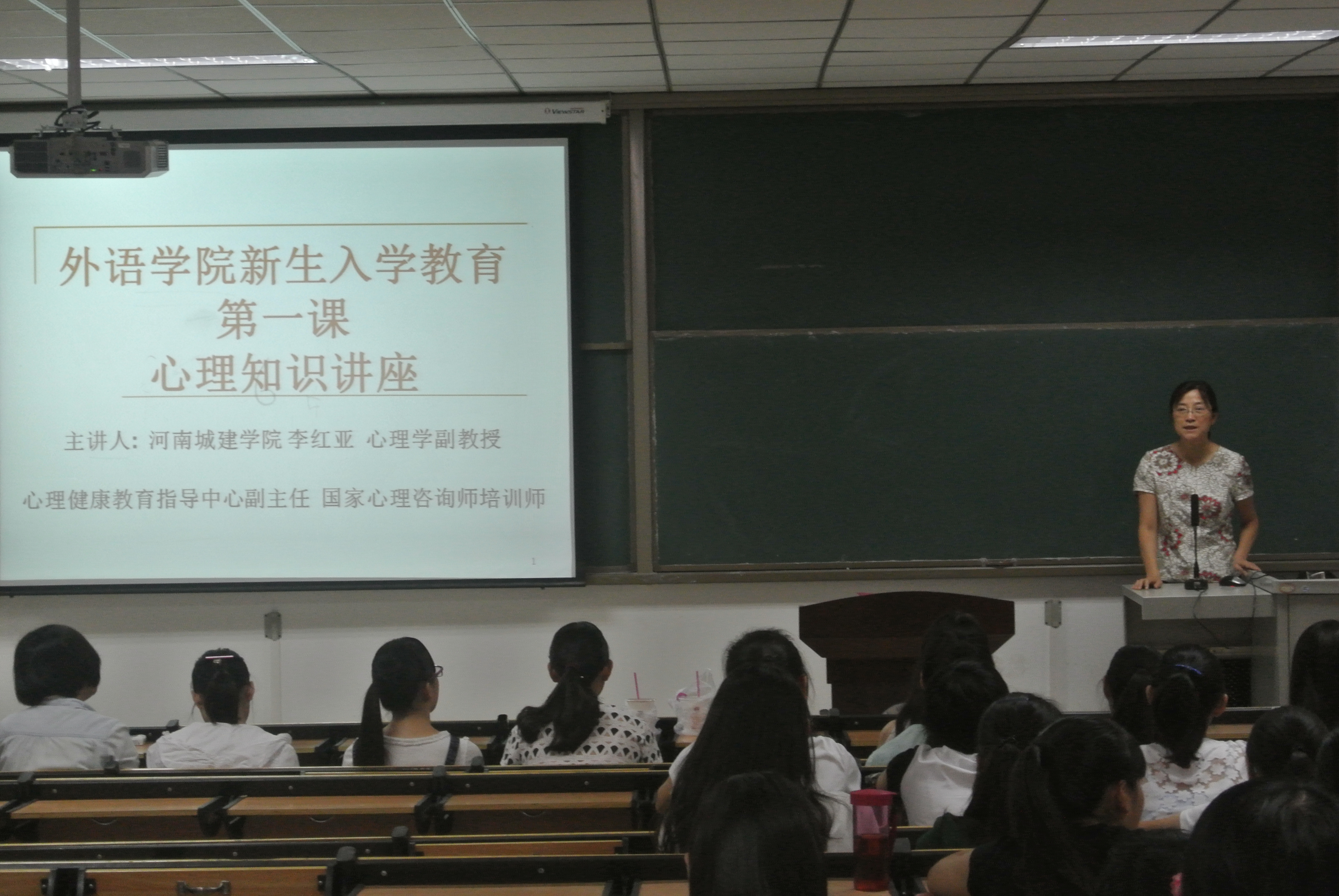 (通讯员 田永果)为帮助新生掌握心理调适技能,尽快适应全新的大学生活,9月15日上午,大学生心理健康教育指导中心李红亚副主任在1号教学楼326教室为外国语学院2015级全体新生开展心理适应性入学教育第一课。