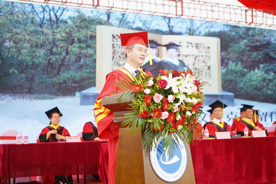 吴晓红在典礼最后向2020届全体毕业生提出殷切的希望:希望你们在未来的人生道路上秉承自强不息、追求卓越的城建精神,胸怀祖国,服务人民,志存高远,直面挑战,脚踏实地,勇于奉献,把校长的殷切寄语和老师们的谆谆教诲化作今后不断前行的动力,把握新时代的脉搏,在充满机遇挑战的明天,书写人生华美的诗篇。最后送上衷心的祝福:祝同学们追逐梦想的帆船扬帆起航,乘风破浪,一帆风顺!