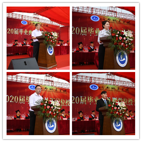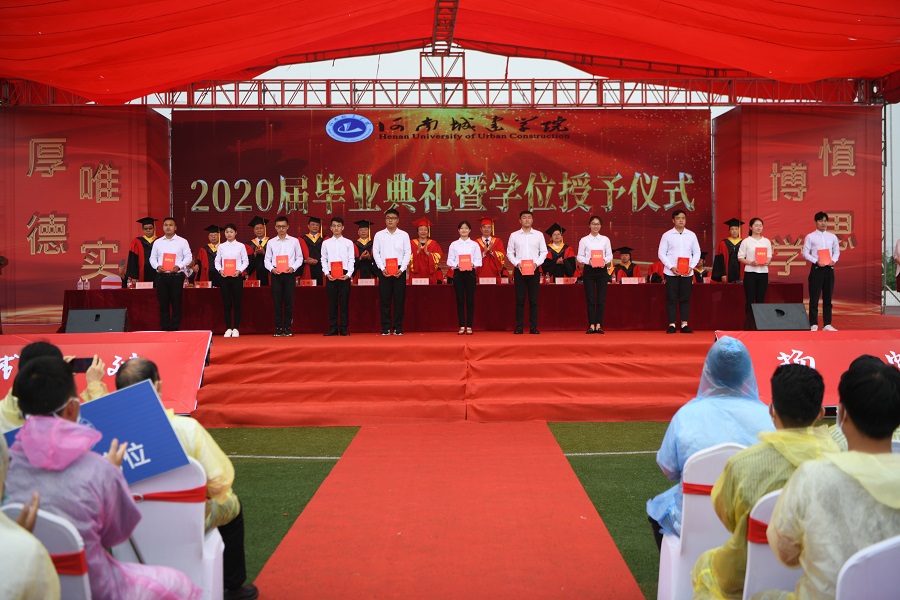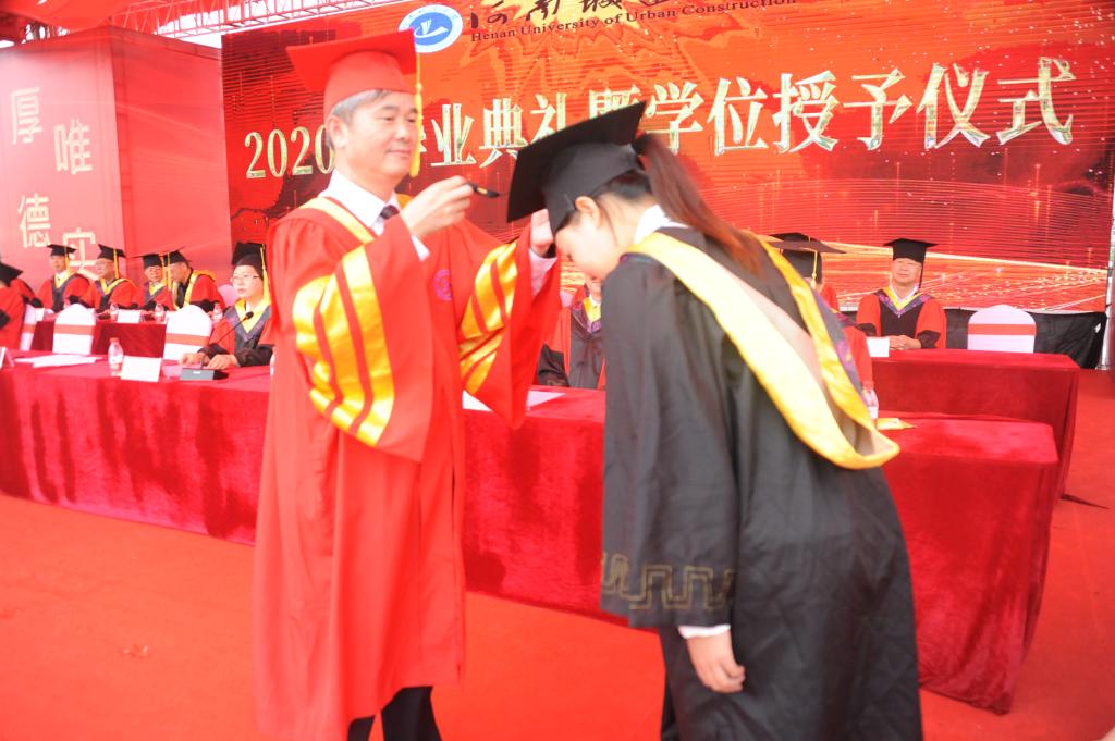 典礼上,王靖宣读了《河南城建学院关于表彰2020届优秀应届毕业生的决定》,周颖杰宣读了《河南城建学院关于授予苏金满等5106名学生学士学位的决定》。与会校领导分别为校级优秀应届毕业生代表颁发了荣誉证书。