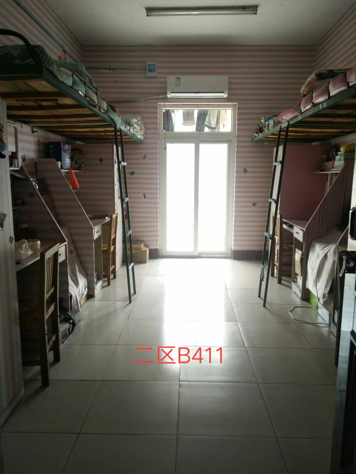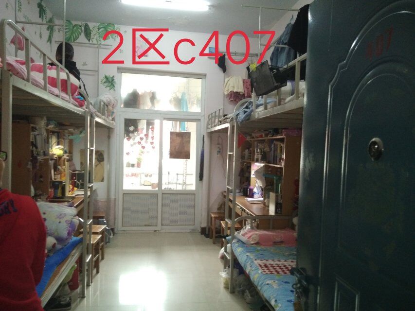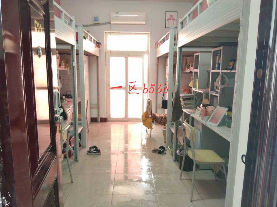 部分宿舍较为脏乱。其中,二区一105宿舍脏乱,个人及室内物品摆放杂乱,地面较脏。